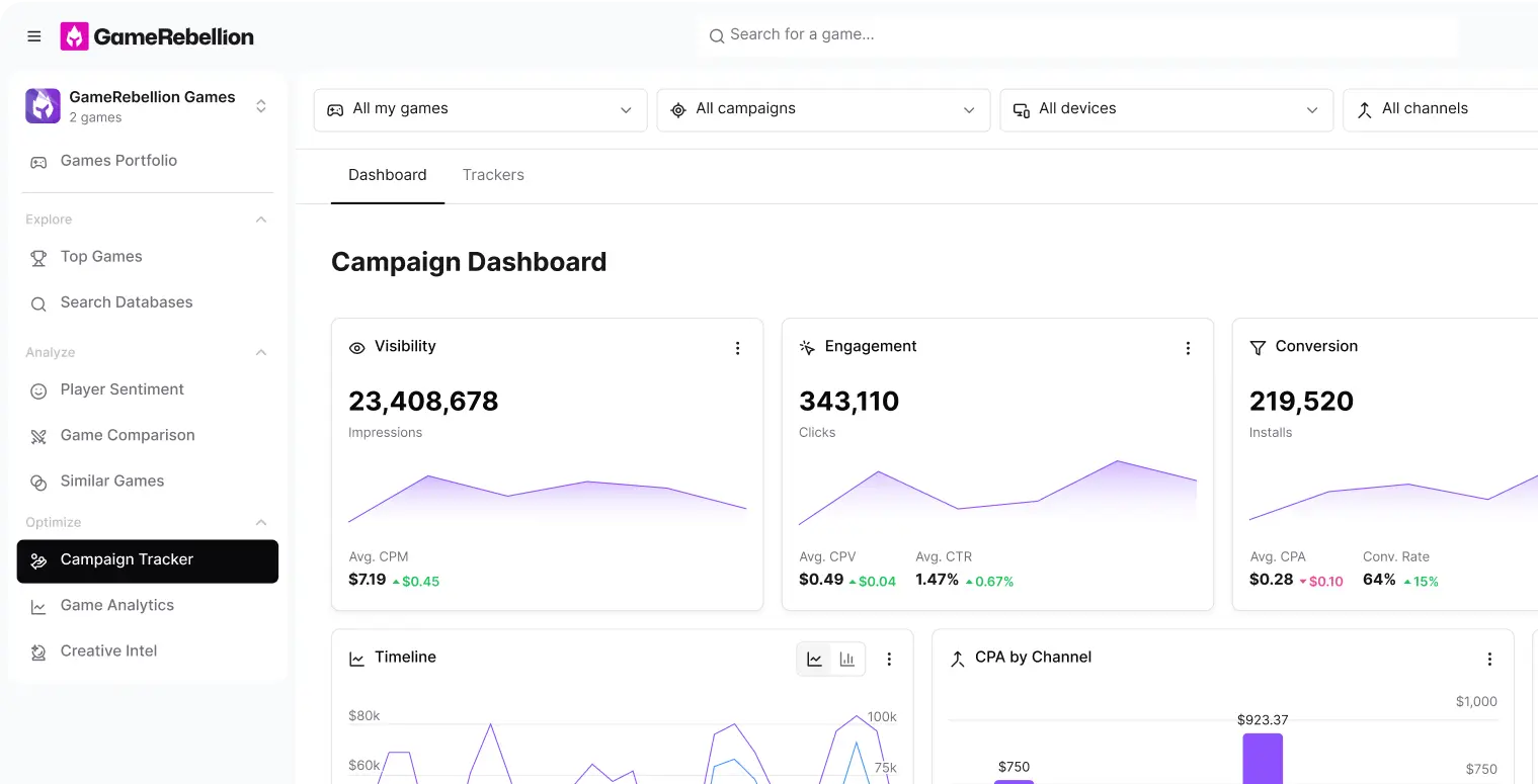Accédez à des métriques de performance en temps réel, des profils complets de l'industrie et des informations pour optimiser vos stratégies, comparer vos concurrents et établir des connexions clés dans le secteur du jeu.